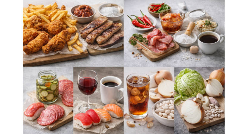 อาหารทอดหรือของมันจัด เช่น ไก่ทอด หมูทอด หรือของทอดกรอบต่าง ๆ ย่อยยาก และอาจกระตุ้นให้เกิดการอักเสบในร่างกาย