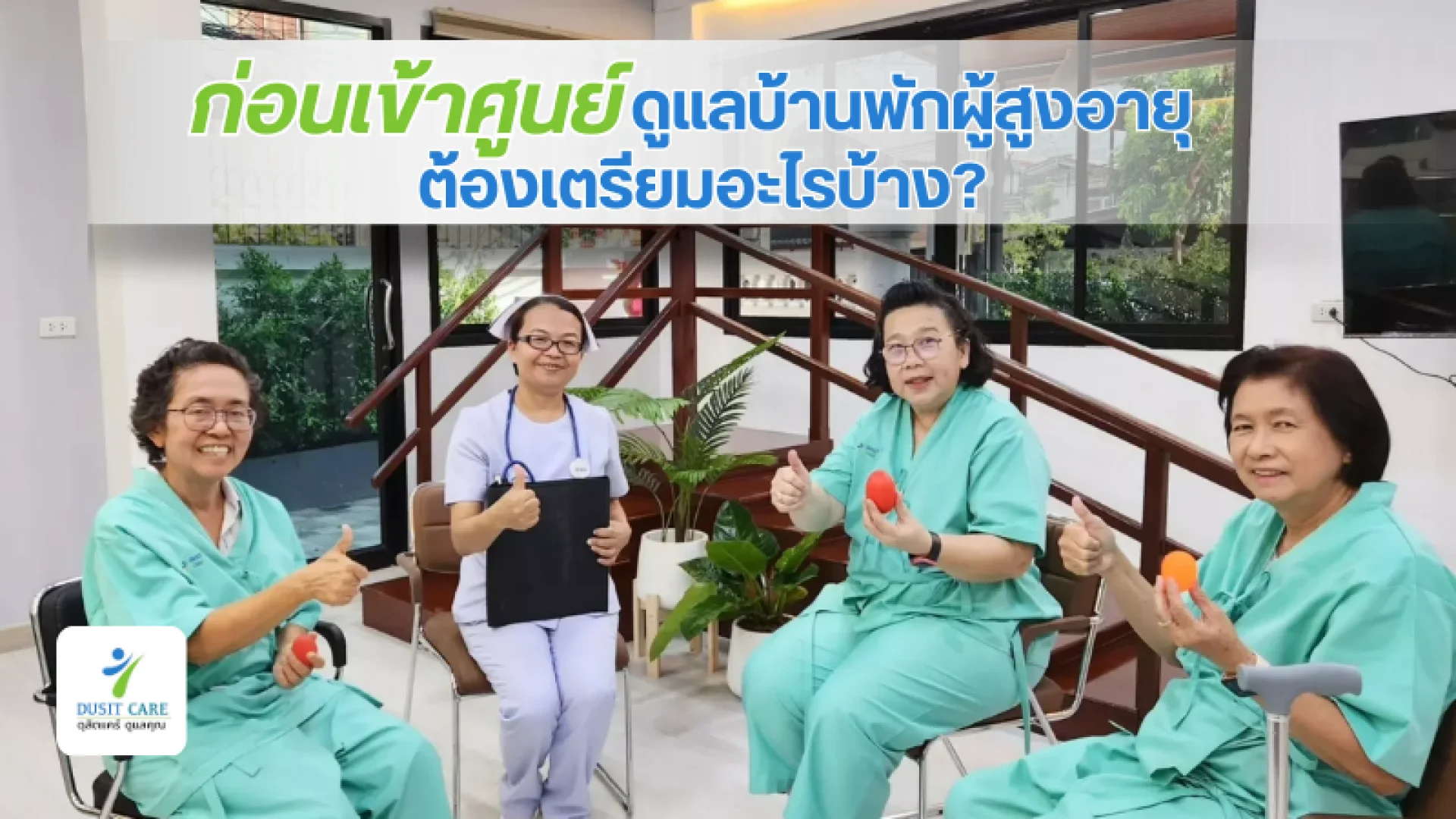 Dusit Care จึงอยากรวบรวมเป็นเหมือน “คู่มือเล็กๆ” สำหรับลูกหลานที่กำลังเตรียมตัวพาผู้ใหญ่ในบ้านเข้าสู่ศูนย์ดูแลบ้านพักผู้สูงอายุเพื่อให้ทุกอย่างเป็นไปอย่างราบรื่น